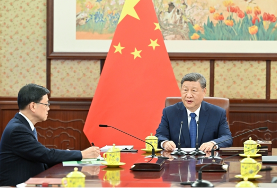 习近平指出,中国共产党二十届四中全会对“十五五”时期国家经济社会发展作出战略擘画,强调要坚定不移贯彻“一国两制”、“港人治港”、高度自治方针,促进香港长期繁荣稳定。特别行政区政府要主动对接国家“十五五”规划,坚持和完善行政主导,扎实推动经济高质量发展,深度参与粤港澳大湾区建设,更好融入和服务国家发展大局。