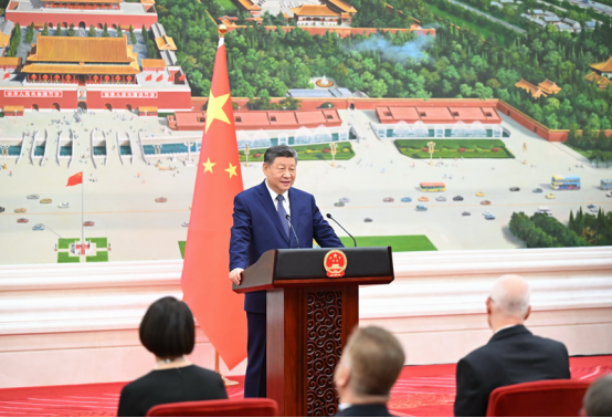 仪式结束后,习近平在北京厅对使节们发表讲话。