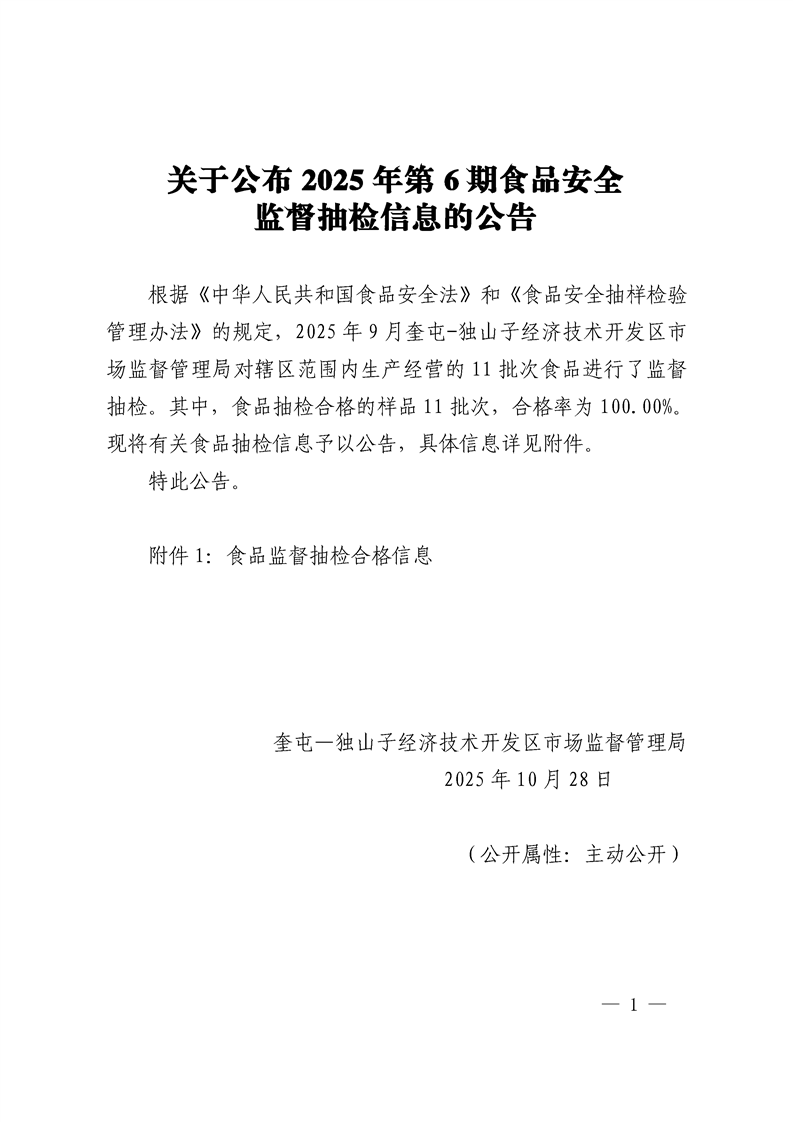 关于公布2025年第6期食品安全监督抽检信息的公告
