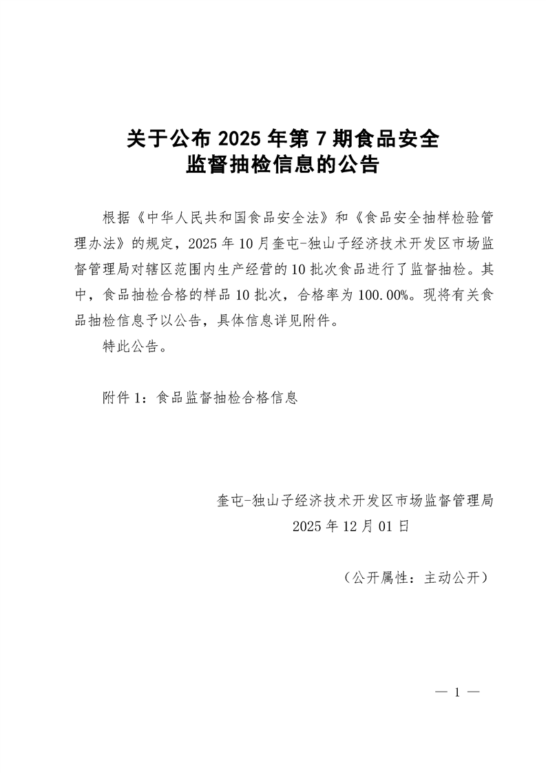 关于公布2025年第7期食品安全监督抽检信息的公告