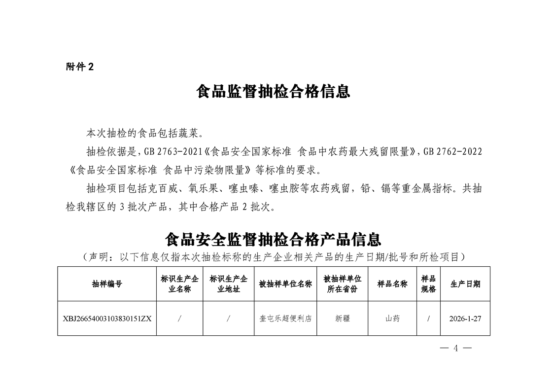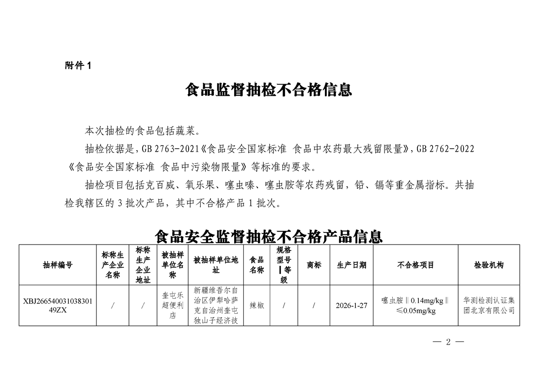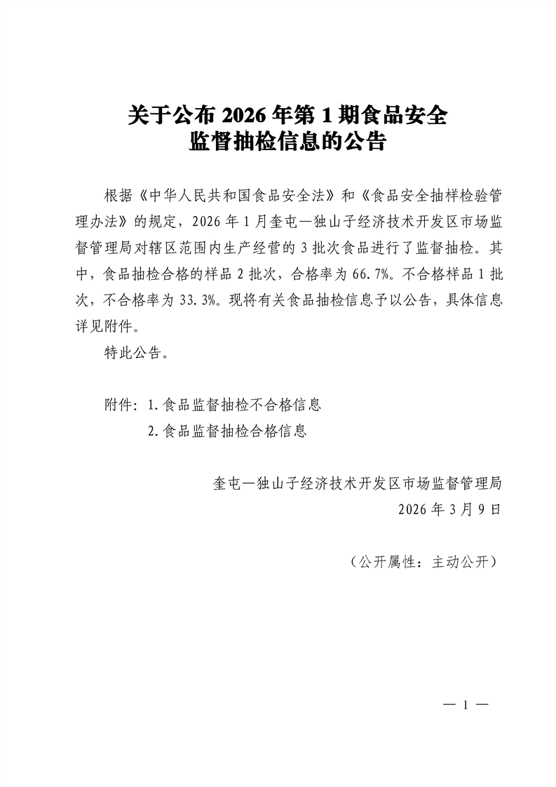 关于公布2026年第1期食品安全监督抽检信息的公告