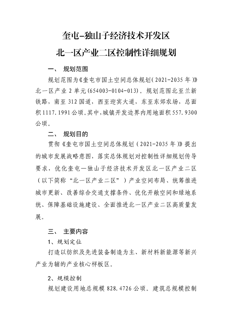 奎屯-独山子经济技术开发区北一区产业二区控制性详细规划