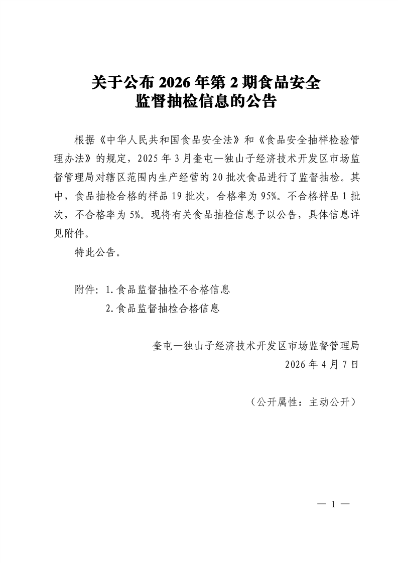 关于公布2026年第2期食品安全监督抽检信息的公告