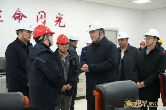 1月22日,在伊犁新天煤化工有限责任公司,伊犁州党委副书记、州长叶尔夏提·吐尔逊拜走进企业车间,详细了解企业生产运营情况以及安全风险自查和特种设备安全管控状况。李亚锋摄