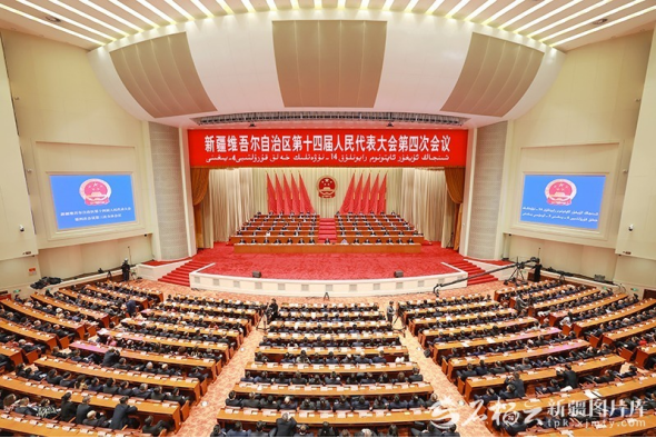 1月31日,新疆维吾尔自治区第十四届人民代表大会第四次会议在新疆人民会堂闭幕。石榴云/新疆日报记者崔志坚摄